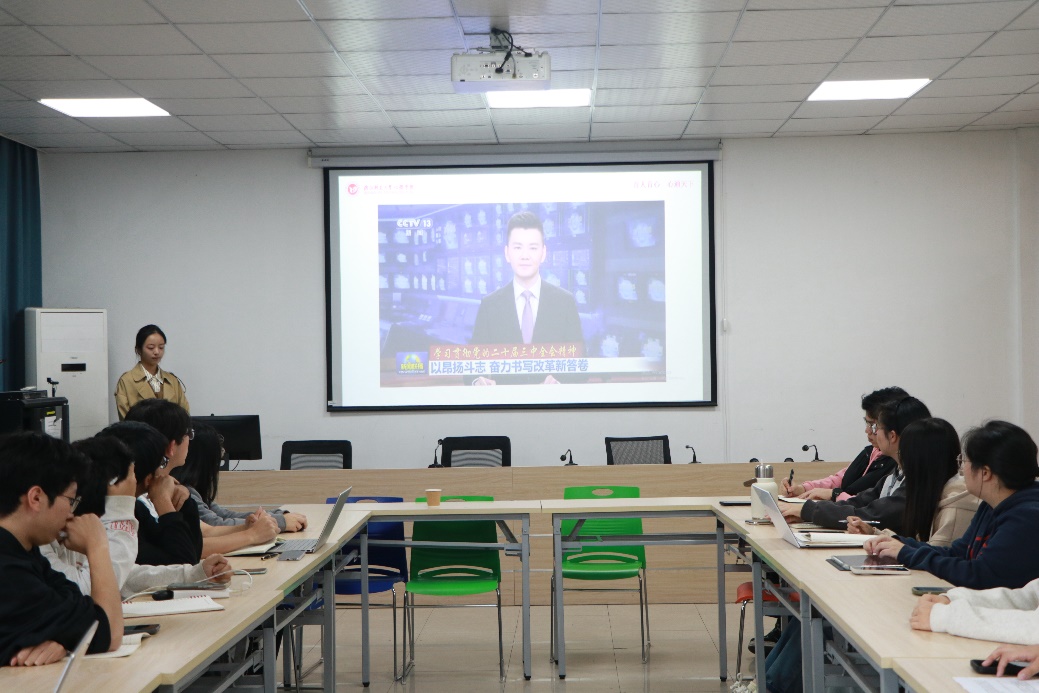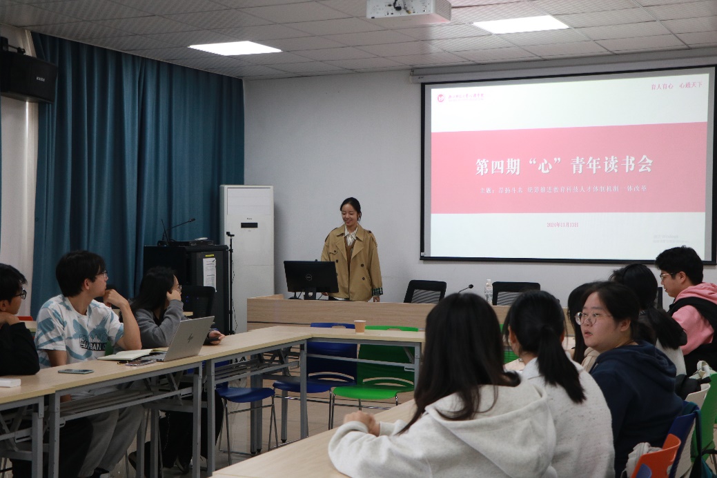 11月13日中午,新葡萄8883举行了第四期“心”青年读书会。本次读书会以《昂扬斗志,统筹推进教育科技人才体制机制一体改革》为主题,活动由学生会主席黄瑞瑜主持。学工办辅导员柏战老师出席会议,学院团委学生会主席团、学生会科研部、团务中心青大队全体成员参加会议。