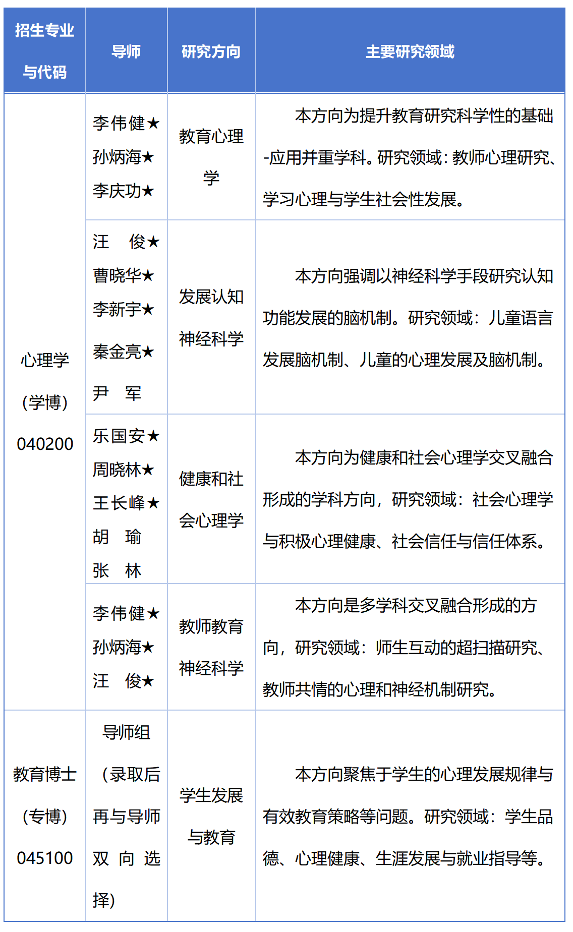 注:标★为校内导师,优先保障生源指标
