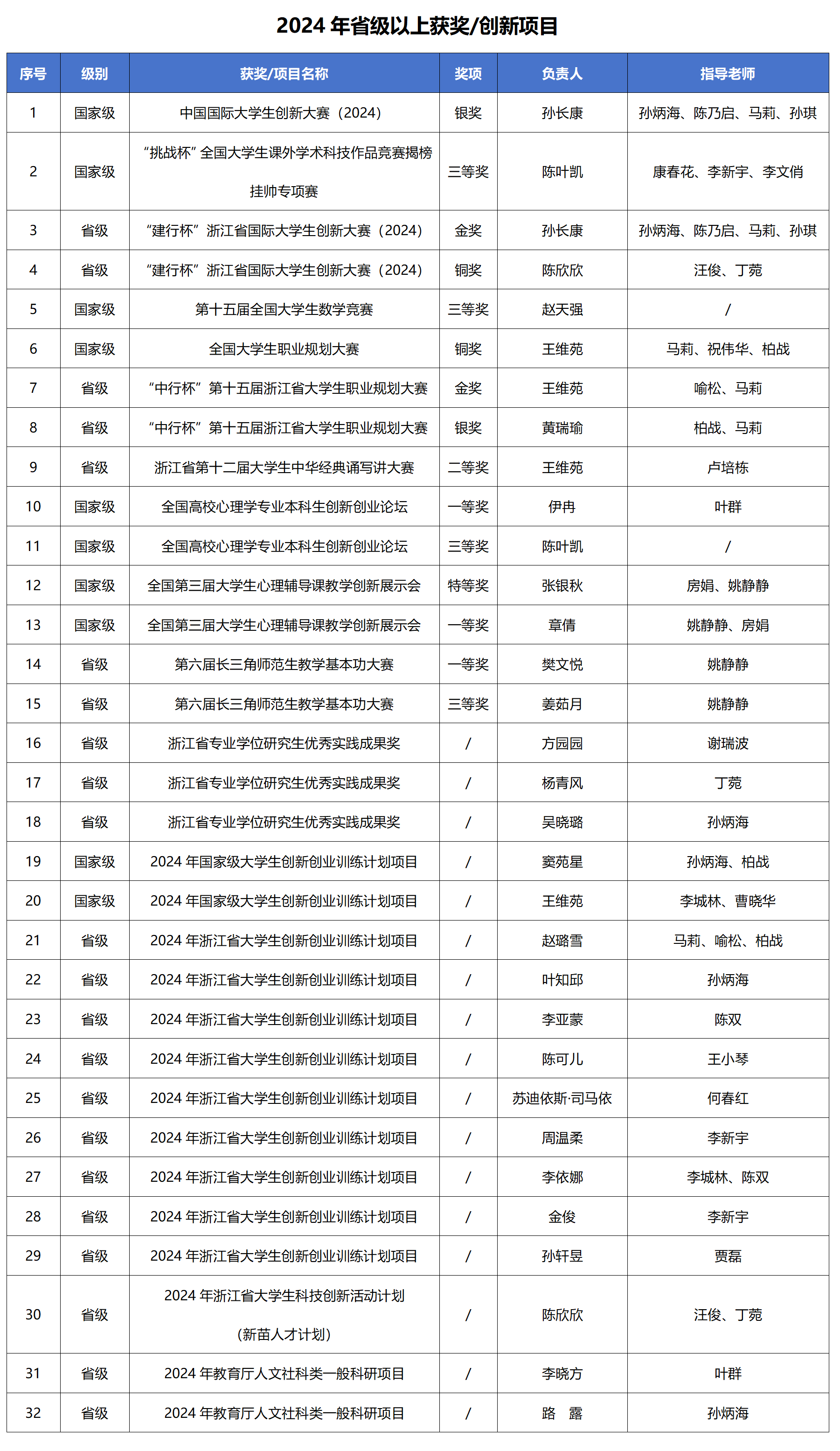 2024年,我院学子先后在省级以上的竞赛中取得佳绩,并收获多项优秀科研项目、实践成果,在这不仅是学生们个人能力的体现,更凸显学院始终坚持“育人育心,心通天下”的教学理念,把培养具有国际视野、有责任担当、有奉献精神新一代“心”青年作为首要任务。未来,新葡萄8883将继续鼓励和支持学生参与各类学术和技能竞赛,强化理论与实践相结合的教学模式,致力于培养更多具有社会责任感和专业技能的心理人才,为心理健康教育事业贡献力量。