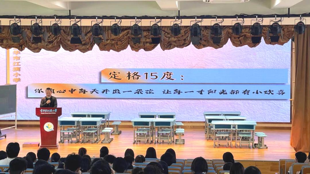 活动由江滨小学德育处副主任金程主持。校长石如意致欢迎辞后,江滨小学副校长曹华锋以《定格15度——你的心中每天开出一朵花 ,让每一寸阳光都有小欢喜》为主题,详细介绍了学校心理健康教育的创新实践。通过"双减"政策落实和"三开三减三增"等教学策略,江滨小学构建了减负增效的育人环境;依托"江风忻语"心理辅导室的专业干预和心理健康筛查机制,实现了危机预防与个案辅导的闭环管理。这些特色实践为见习学生提供了宝贵的学习经验。