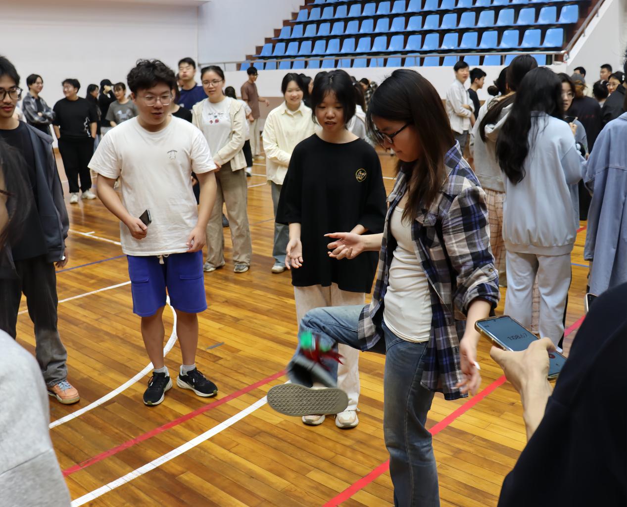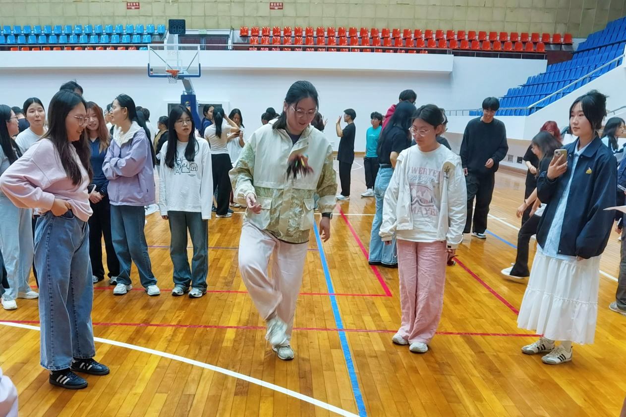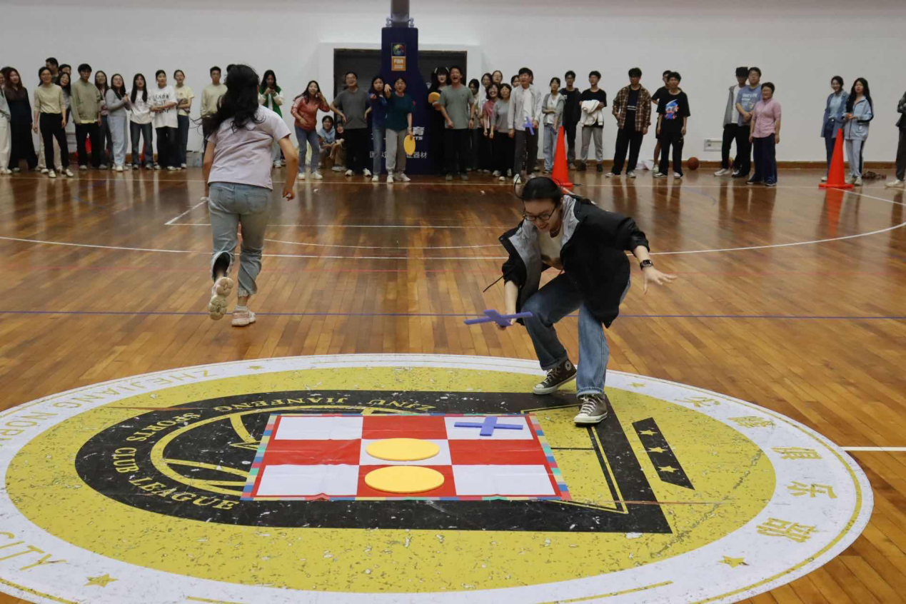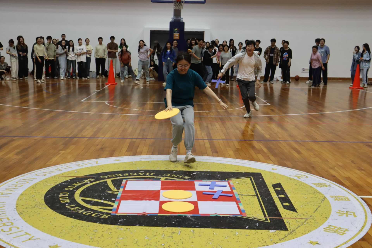 比赛现场热闹非凡,由班级为单位组建的师生队伍纷纷亮相,展开了激烈的角逐。在团体接力赛中,彩色的毽子在围成圆圈的师生间轻盈传递,跳绳、夹篮球时的轻快步伐与夹钢珠的稳健手法相得益彰,师生们互相鼓励、配合无间;在三子棋的智慧对决中,师生们时而凝神思考,时而快速移动,在竞技中碰撞出智慧的火花。整个比赛过程洋溢着轻松愉快的氛围,师生们在运动中增进情谊,在互动中收获快乐。