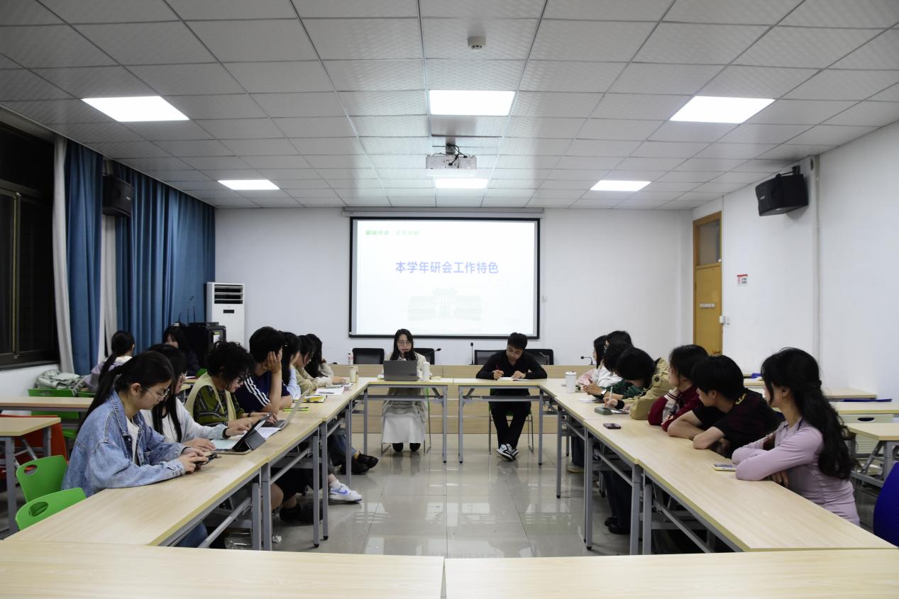 在主题分享环节,两研会主席率先对研会工作进行全面总述,随后,各部门参会人员依次对本部门的工作特色进行细致阐述,充分展示各部门在研会中的独特作用与贡献。新葡萄8883成员分享了关于各部门的日常工作经验以及成功开展的特色活动案例,例如:尖峰课堂讲座,学术竞赛组织活动以及四季运动会等。数学学院成员则聚焦于学院特色活动以及特色工作制度展开分享,从学术研究到实践应用,从团队协作到个人成长,全方位呈现数学学院研会工作的亮点与特色。