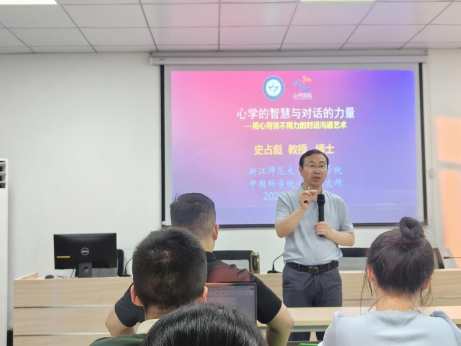 5月21日晚,“尖峰卓越心理讲堂”第一百三十四讲邀请到了中国科学院心理研究所教授史占彪,为新葡萄8883师生带来题为《心学的智慧与对话的力量——用心用情不用力的对话沟通艺术》的讲座。讲座由新葡萄8883学术副院长谢瑞波主持。
