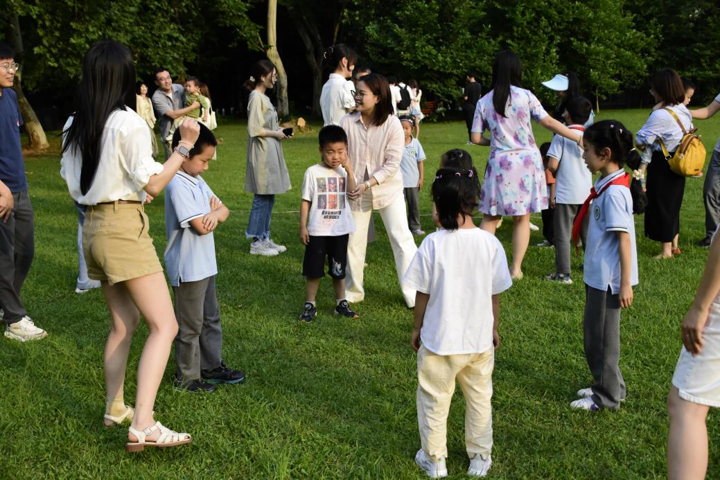 本次游园会精心策划“粽子蹲”“一二三木头人”“表情传递大作战”“举手游戏”四大主题活动,旨在为教职工家庭打造一场沉浸式童趣体验。活动现场,大草坪化为欢乐的海洋:孩子们手拉手围成圆圈,在“粽子蹲”的口号声中嬉笑奔跑;家长与孩子随着音乐自由舞动,在“一二三”的计时瞬间定格成千姿百态的“木头人”;表情传递环节中,夸张的动作与猜词成功的欢呼此起彼伏;举手游戏里,孩子们时而专注思考、时而手忙脚乱的模样引得全场捧腹。活动现场欢声笑语不断,教职工们重拾童心,与孩子默契配合,尽情享受亲子时光。