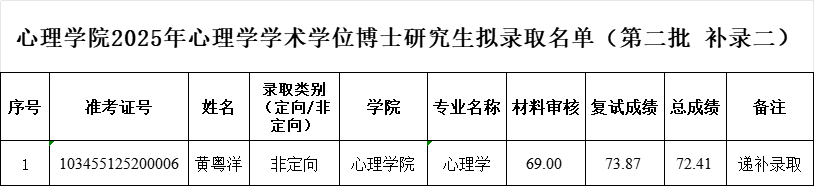 新葡萄88832025年心理学学术学位博士研究生拟录取名单(第二批 补录二)