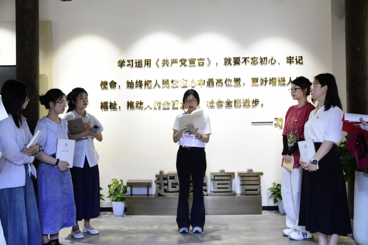作为刚加入组织的新党员,在陈望道先生工作过的地方宣誓并重温《共产党宣言》的经典篇章,字字句句如精神灯塔。我定当铭记今日所见所感,赓续红色血脉,以陈望道先生为榜样,坚定理想与初心,将“真理的甘甜”转化为不懈奋斗的动力,努力提升本领,服务人民群众,为实现中华民族伟大复兴贡献自己全部力量!