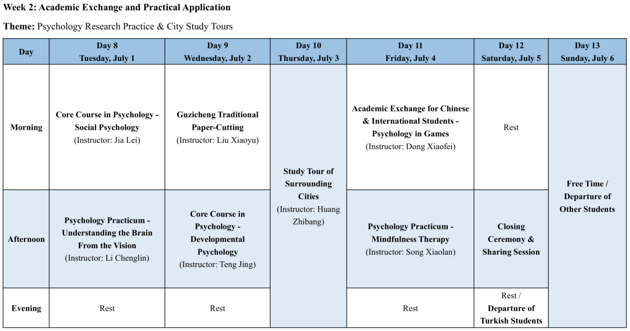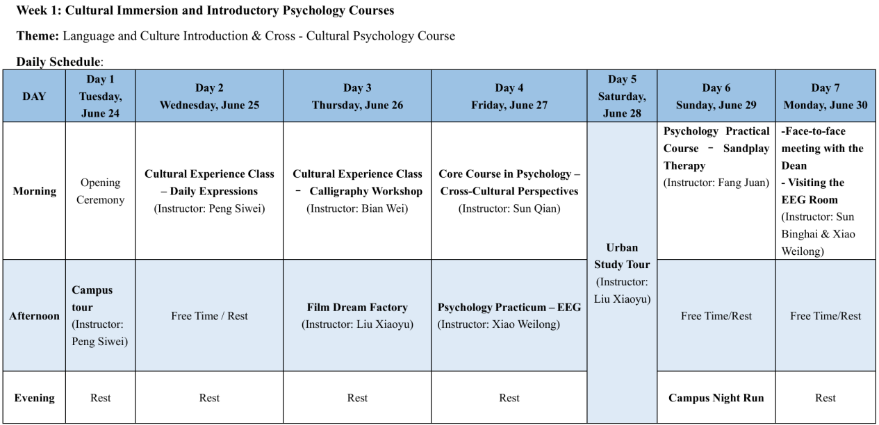 本次夏令营以“中国文化融入与心理学基础”为核心主题,设计了“学术精研”与“文化浸润”两大并行的课程模块,由学院孙炳海教授、汪俊教授、贾磊副教授领衔,汇聚12位跨领域专家组成的强大教学团队,课程内容涵盖社会心理学、发展心理学、文化心理学等核心理论,以及沙盘治疗、正念训练、认知神经科学实验操作等实践项目,还特别设置了中外学生学术研讨,激发跨文化学术灵感。