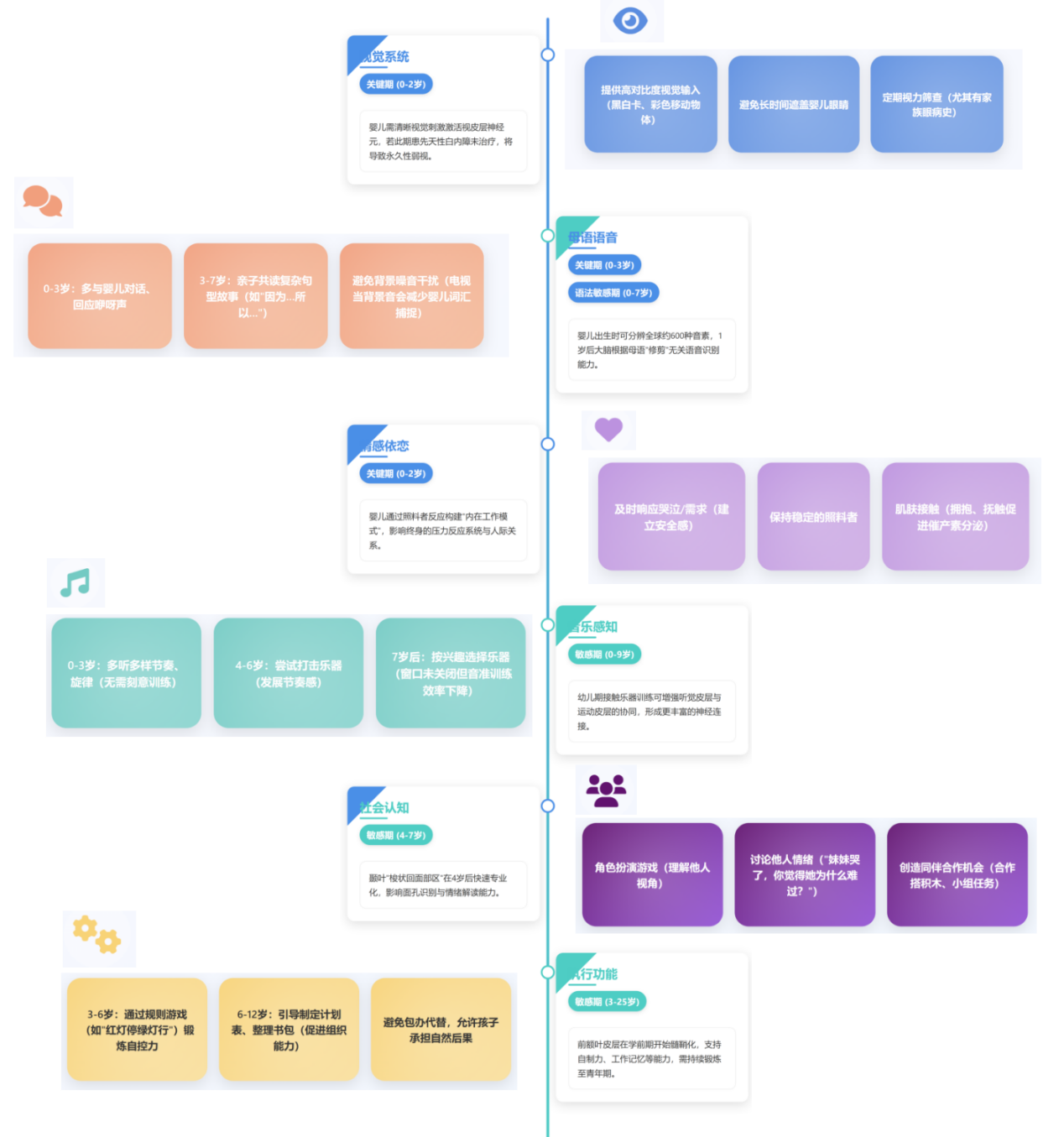 你知道为什么孩子学东西时快时慢吗?脑科学揭示,大脑并非匀速发育。特定时间段内,大脑对环境输入更敏感,神经回路塑造效率更高。这就是大脑发育关键期,不同能力发育关键期各有特点和不同,了解掌握它们,将更精准支持孩子成长。通过这些大脑发育时间表,我们能更清楚孩子大脑的成长节奏。这些黄金期,是生命赋予孩子的独特礼物,也是父母陪伴的宝贵机会。它不是一场竞赛,而是一段用心灌溉的旅程——用爱的语言滋养神经连接,用自由探索激发无限可能。理解规律,把握契机,就是给孩子最好的支持。