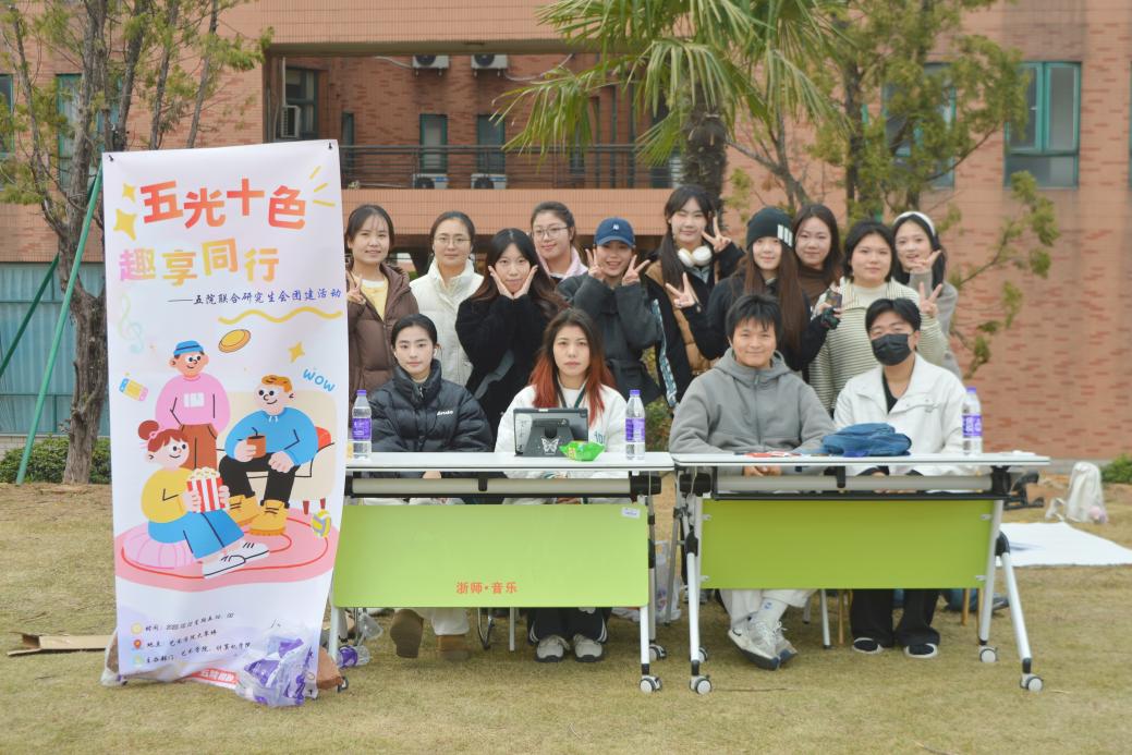 2025年12月12日下午,由浙江师范大学艺术学院研究生会主办,新葡萄8883、艺术学院、计算机科学与技术学院、体育与健康科学学院和设计与创意学院研究生会文体策划部联合承办的“五光拾色,趣享同行”五院研究生联合团建活动在19幢大草坪顺利举行并圆满落幕。本次活动汇聚五院共60名研究生会成员,旨在通过趣味协作与才艺互动,促进跨学科融合,增强团队凝聚力,营造积极向上、团结协作的校园文化氛围。